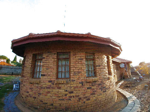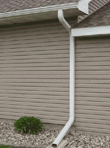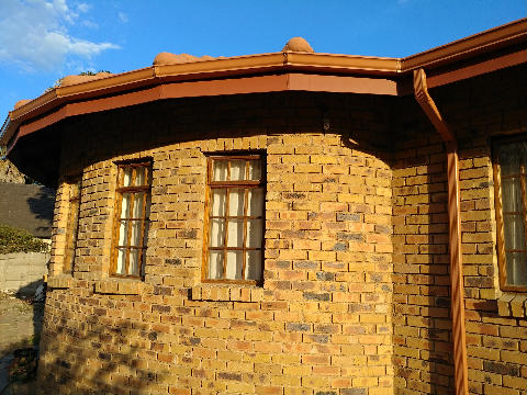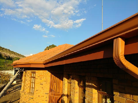 Seamless gutter with down-pipe and on curved buidling